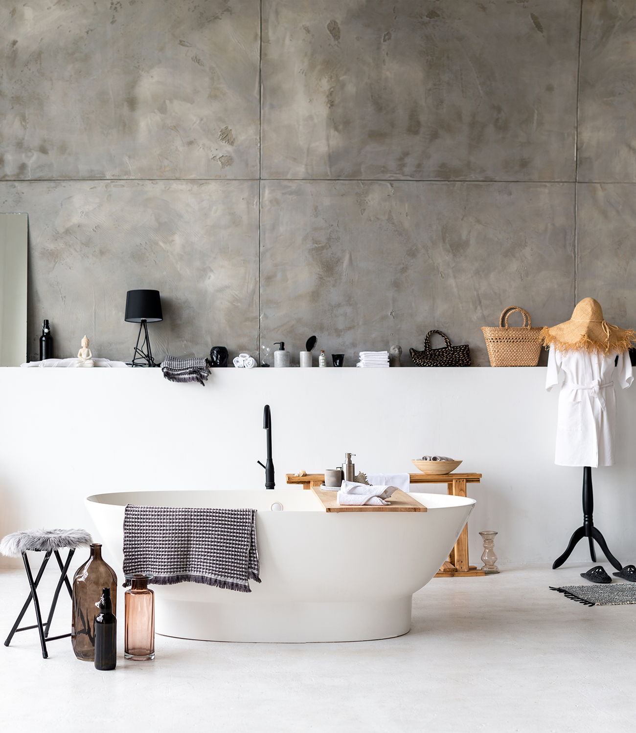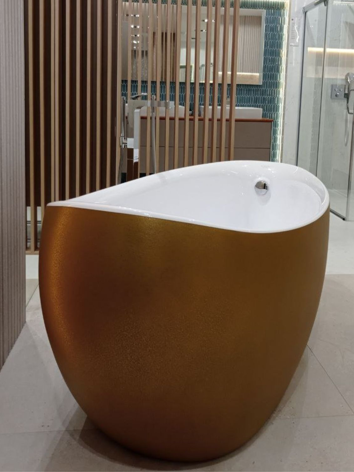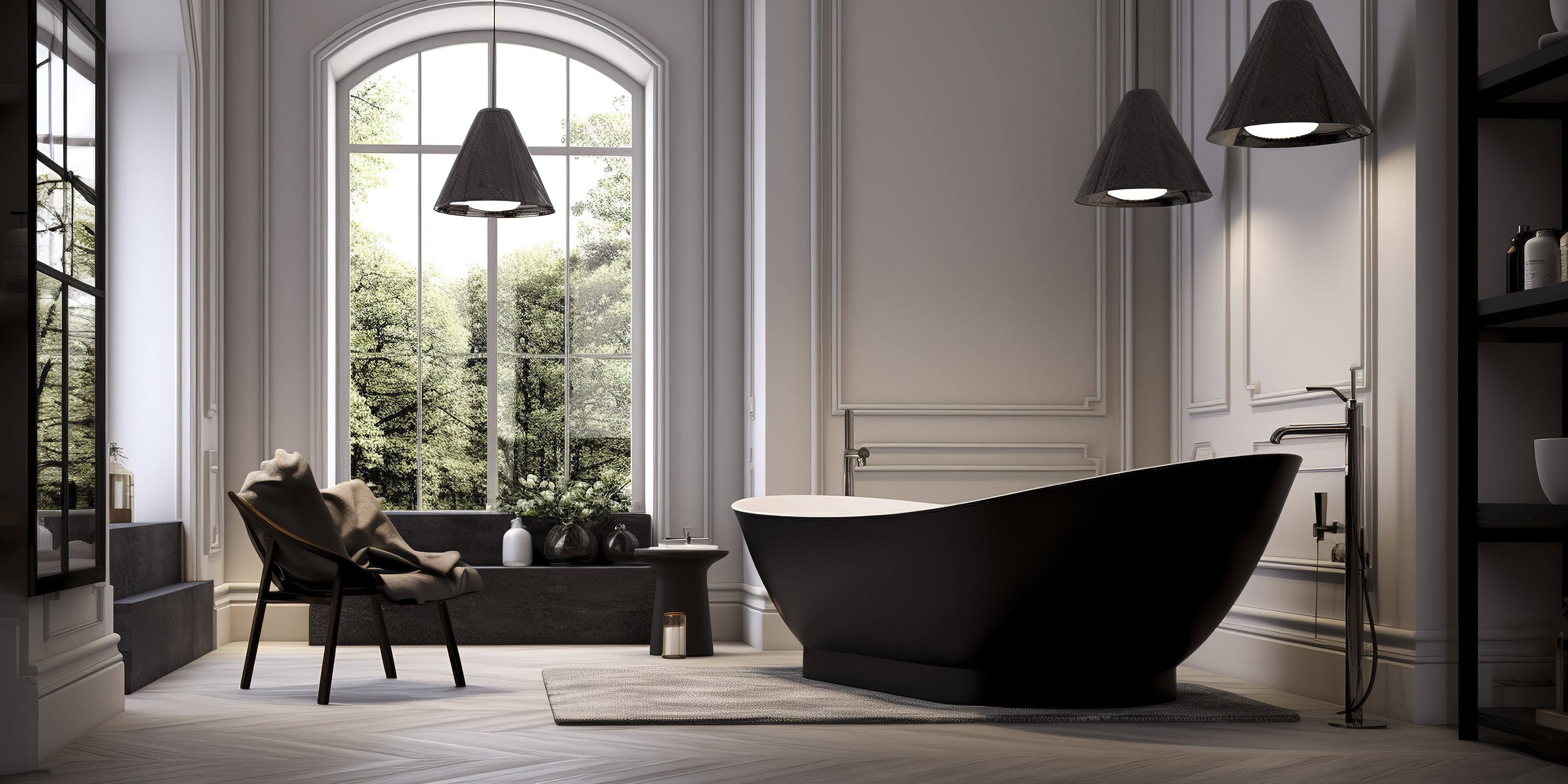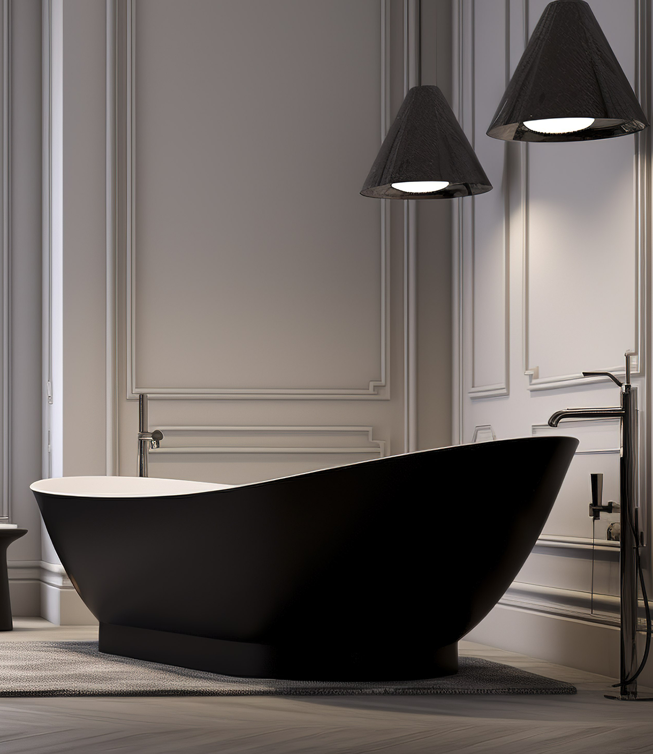 Mieszanie różnych metalicznych wykończeń, takich jak mosiądz, szczotkowany nikiel i matowa czerń, dodaje głębi i luksusu do łazienki. Te akcenty mogą być używane w armaturze, uchwytach czy dekoracyjnych elementach, tworząc elegancki i nowoczesny wygląd. Na załączonym zdjęciu widzimy wannę Ambiente w wykończeniu Miedź Antic, która doskonale ilustruje ten trend.