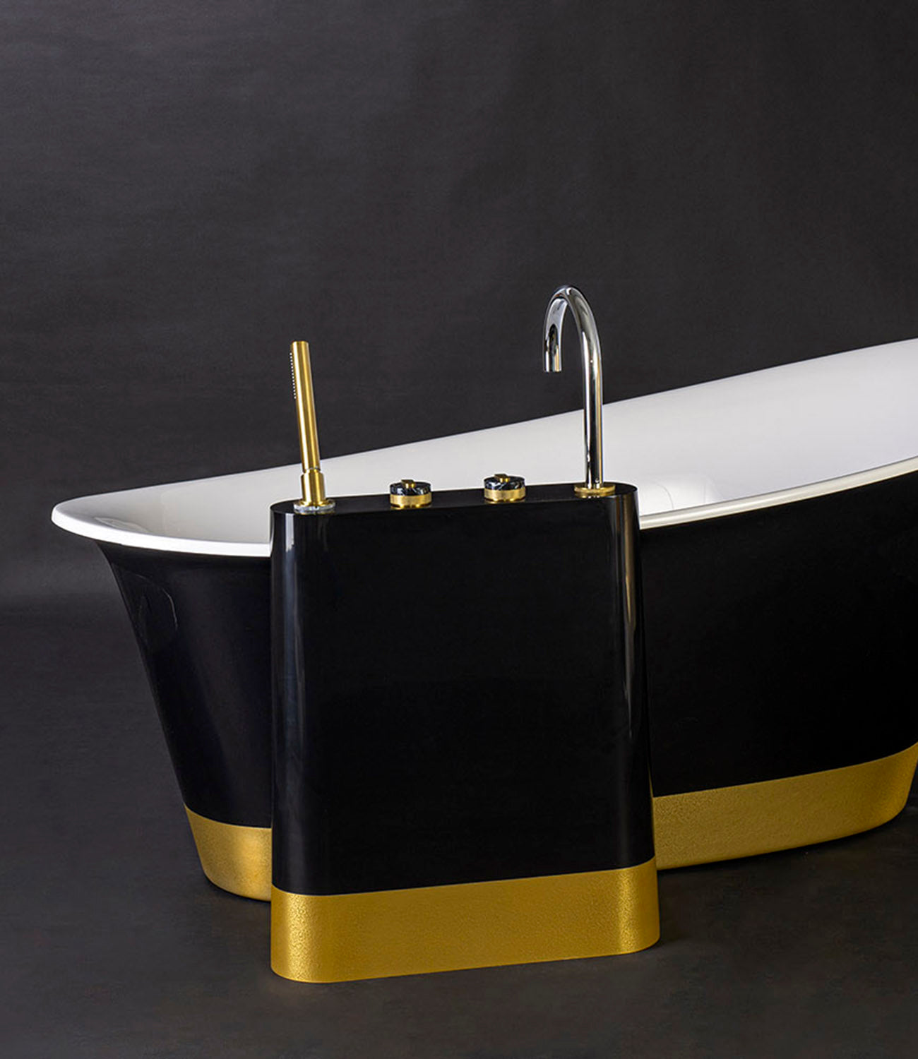 Postument Ravon zastępuje tradycyjną baterię wolnostojącą podłogową, eliminując konieczność kucia posadzki. Jego elegancka i nowoczesna forma przyciąga wzrok, a jednocześnie jest niezwykle praktyczna. Możesz na nim umieścić lampkę wina, kosmetyki czy inne niezbędne akcesoria, co czyni go nie tylko funkcjonalnym, ale także stylowym dodatkiem do Twojej łazienki.
