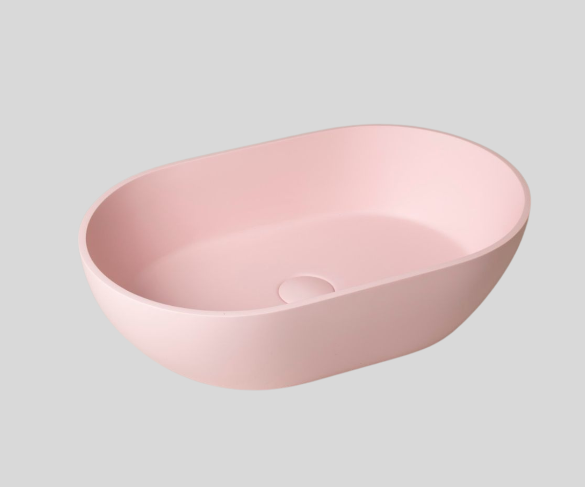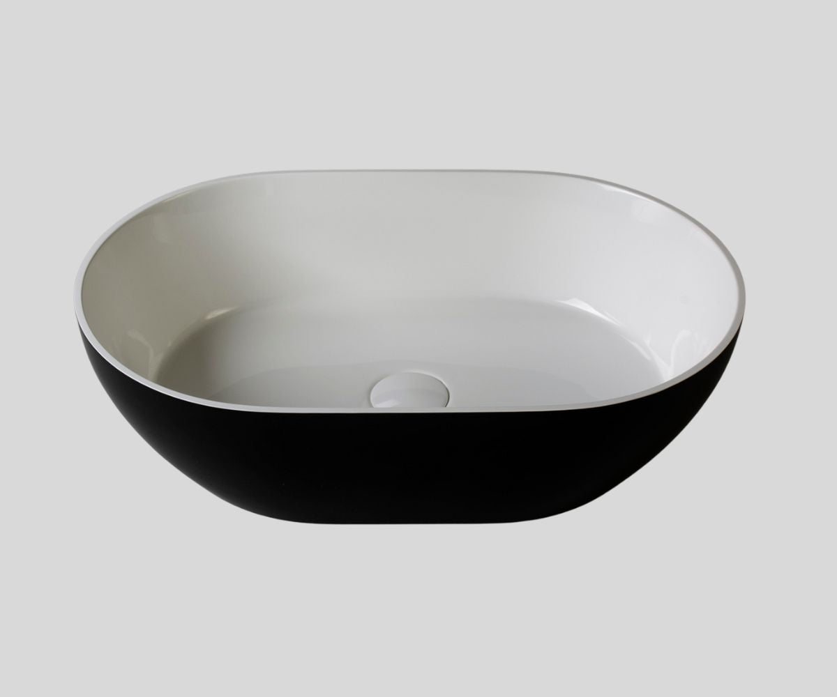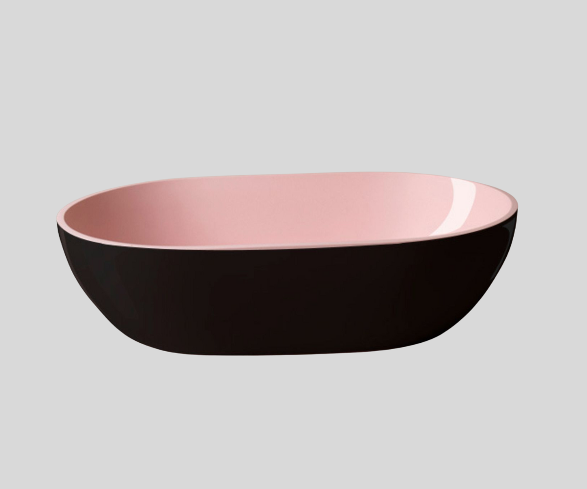 The washbasin is available in two colors. The inside of the washbasin is always other than white, selected from the Ravon or RAL palette (individual pricing). Depending on the material used, the surface of the washbasin may be matte (PureStone) or glossy (Marmonite). Outside color options and lead time as in the Bicolor version.