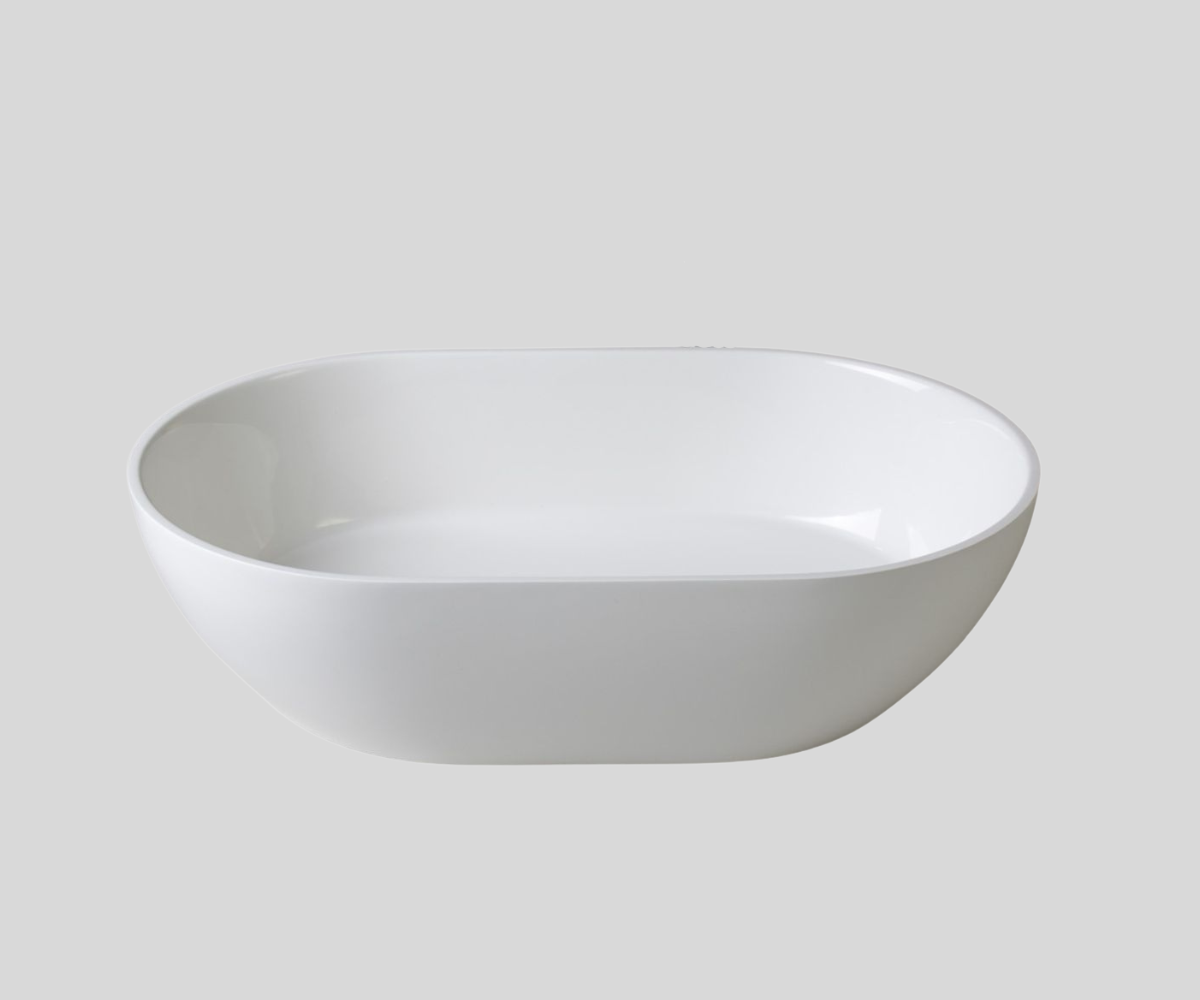 Classic finish, white gloss (Marmonite) or matte (PureStone). Both outside and inside the sink. We usually have washbasins in this finish in stock, which allows for a very quick order fulfillment time.