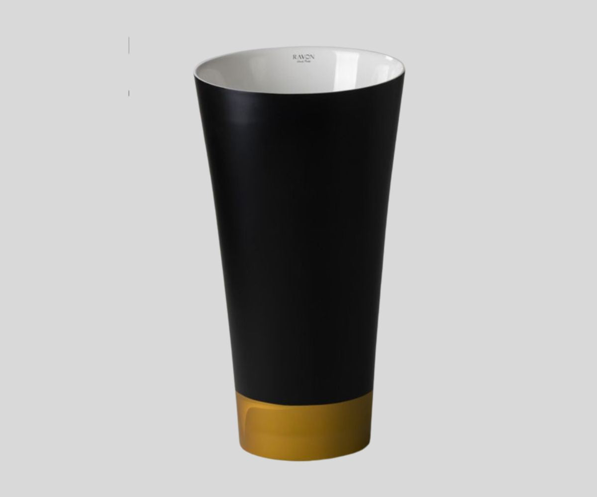 Washbasin personalized according to the customer's request. Color options as in Bicolor Personal washbasins. Additionally, we place a decorative strip on the washbasin made of 22-carat gold (selected color), synthetic gold, silver, platinum, copper. The decorative strip can also be made in any color from the RAL palette. Waiting time depending on the number of orders: 5 to 6 weeks.