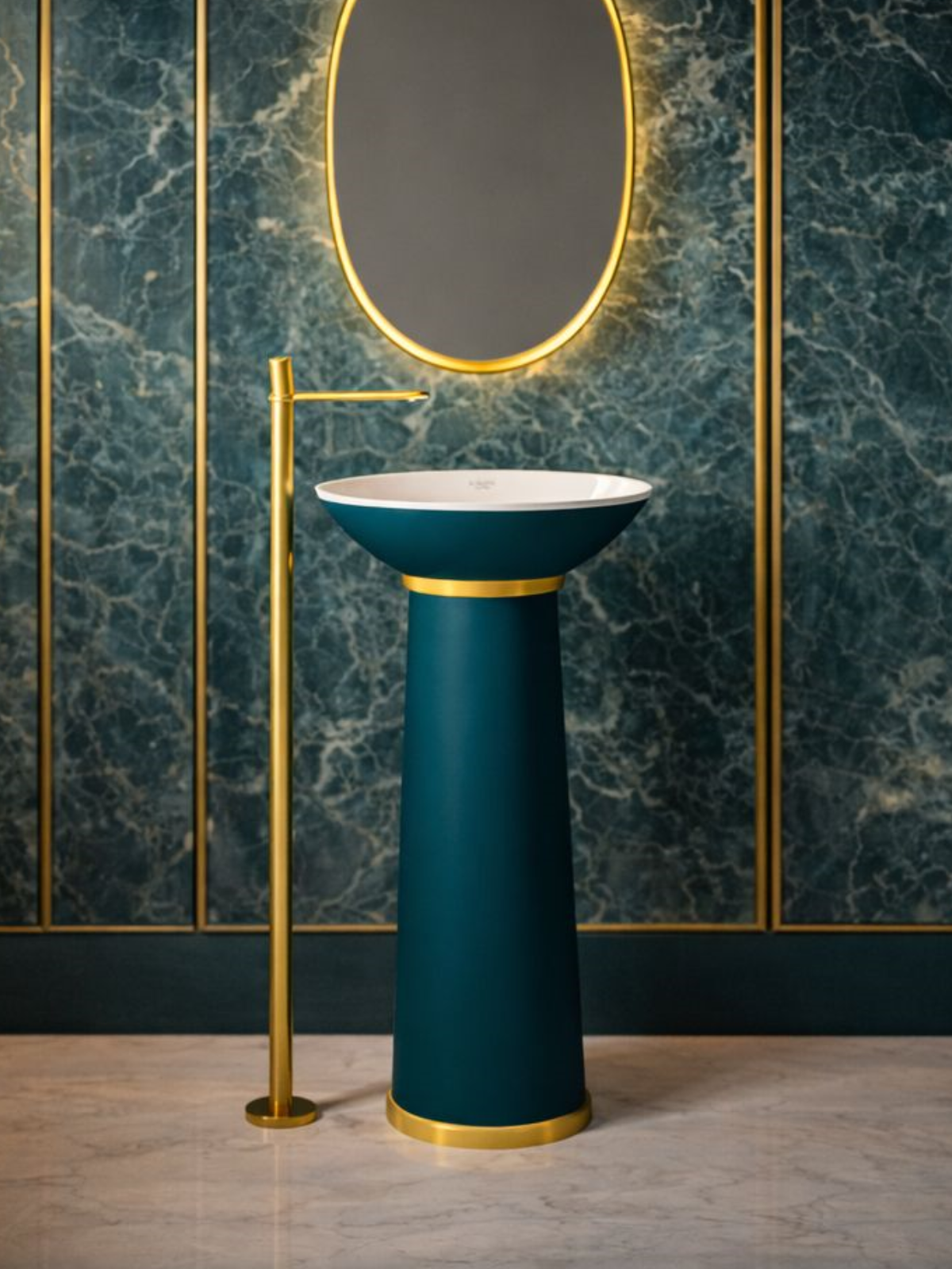 "The Vision Edge freestanding washbasin is a sophisticated and stylish solution for the bathroom, adding elegance and modernity to the space. It is a pedestal washbasin, which means that it has been designed to be mounted on the floor, with a distinctive pedestal supporting the washbasin.