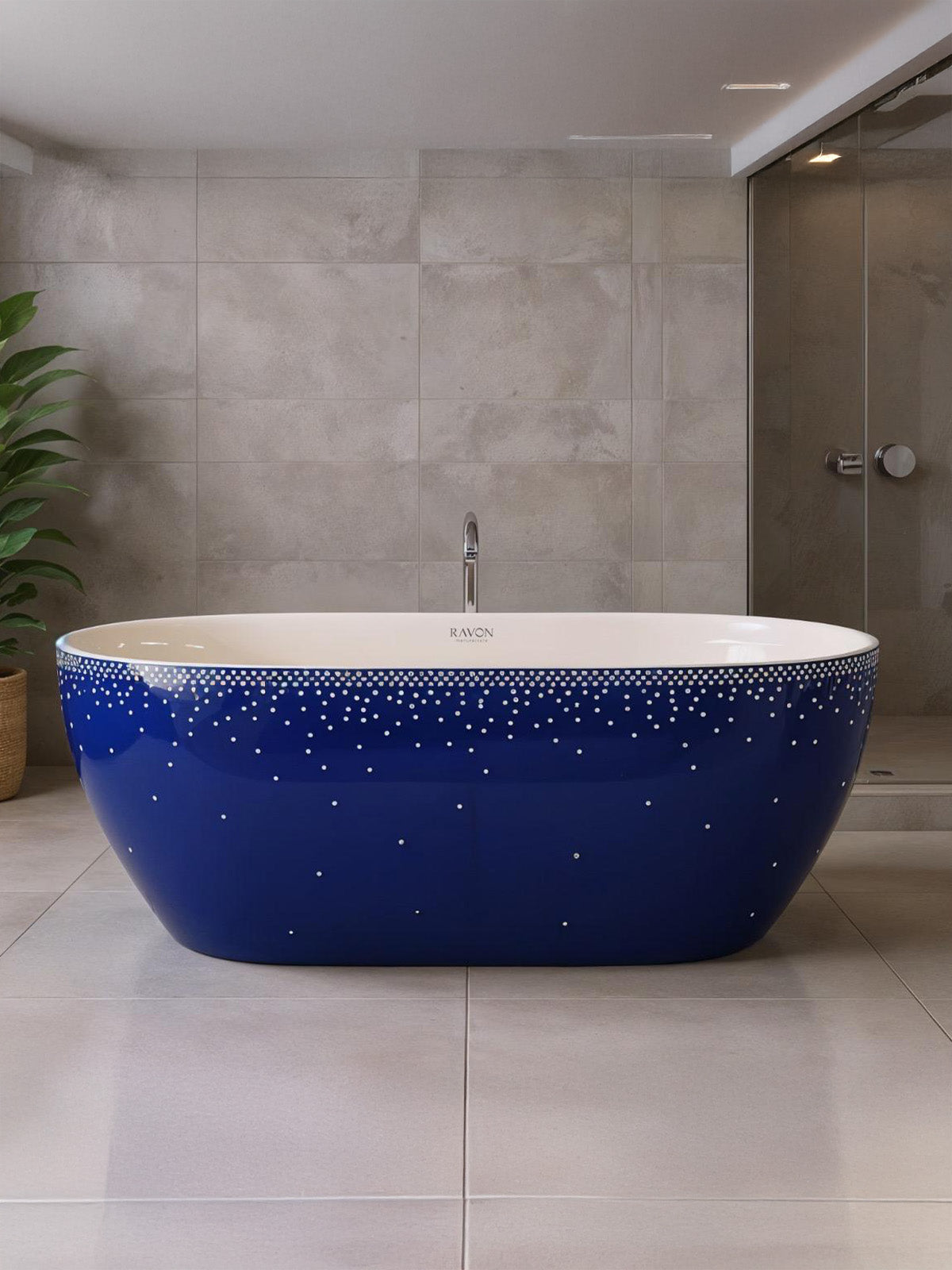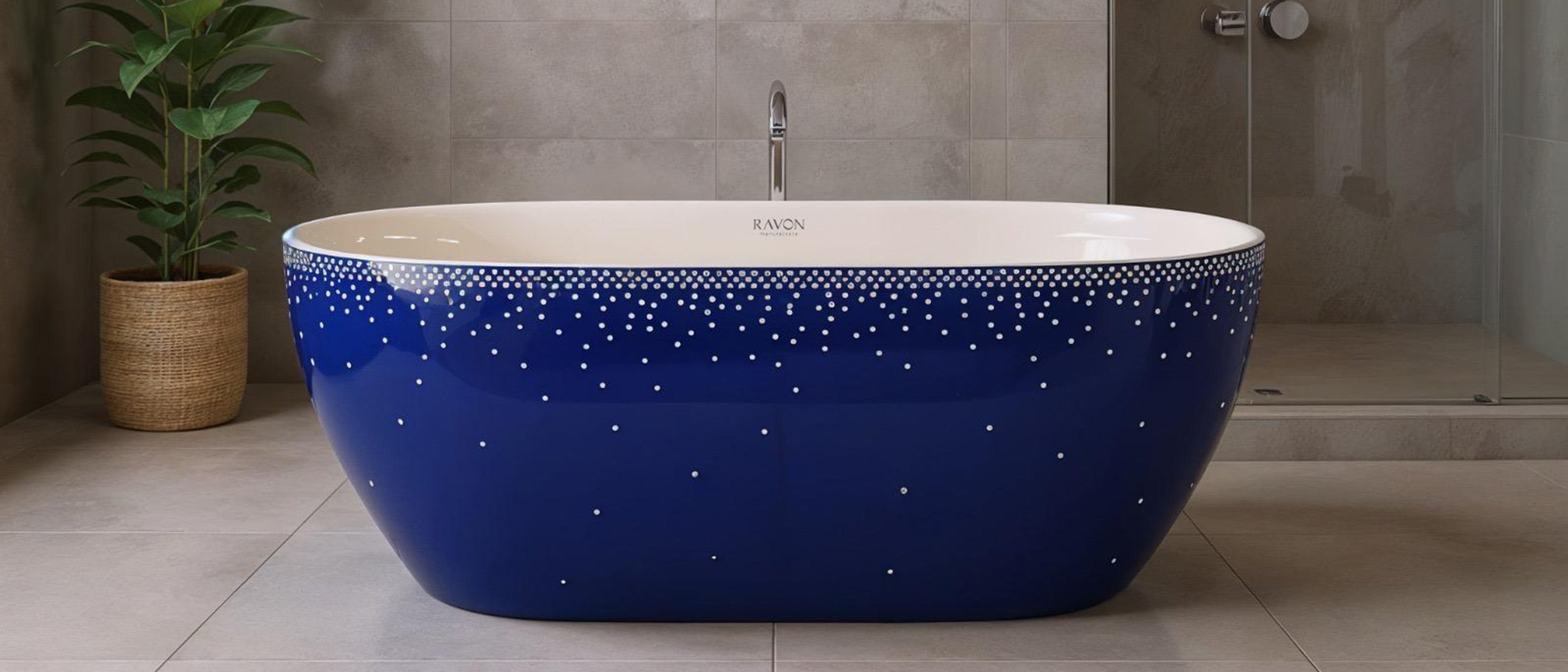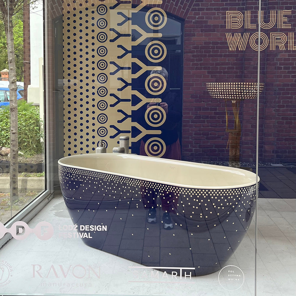 Wanna Neo z dekoracją Serenity to kompaktowy model o długości 156 cm, który łączy funkcjonalność z wyrazistym, rękodzielniczym wzorem. Delikatny, rozproszony deseń inspirowany gwiezdnymi konstelacjami i deszczem Perseidów powstał z użyciem prostego stempla tak charakterystycznego dla bolesławieckiej ceramiki. To idealna propozycja do mniejszych łazienek, które nie rezygnują z charakteru, jakości ani designu.