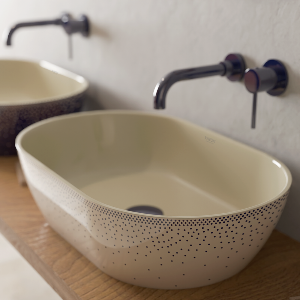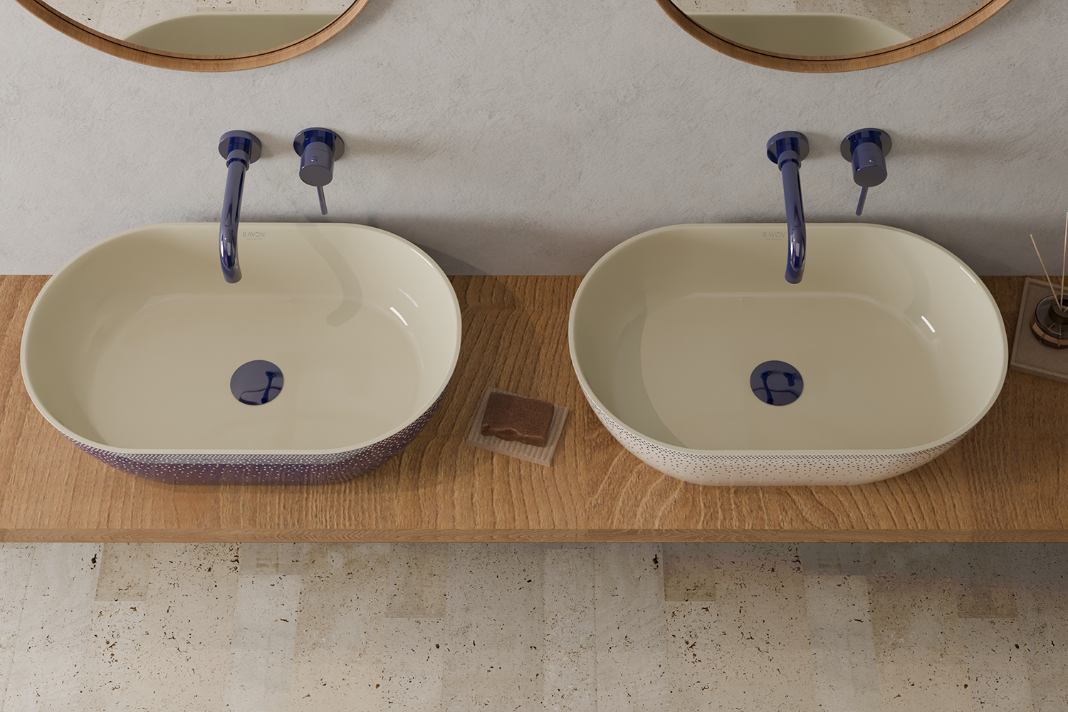 Umywalka nablatowa Space to naturalne uzupełnienie wanny z kolekcji Serenity. Dostępna w tych samych wariantach kolorystycznych i zdobiona ręcznie nanoszonymi stemplami, tworzy spójny komplet z formą wanny. To propozycja dla osób, które cenią konsekwencję, rzemiosło i dopracowany detal. Razem tworzą harmonijny duet, gotowy do wprowadzenia do wnętrz z charakterem.