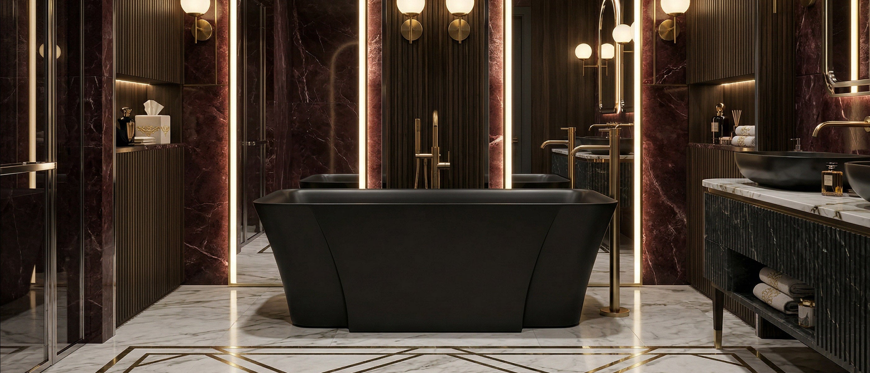 Ravon Balance to wanna, która nie znika we wnętrzu, tylko staje się jego centralnym punktem. Wyrazista forma, głęboki kolor i dopracowane proporcje tworzą przestrzeń o charakterze premium. To model stworzony do długich kąpieli, również we dwoje, gdzie liczy się nie tylko komfort, ale też doświadczenie całej przestrzeni.