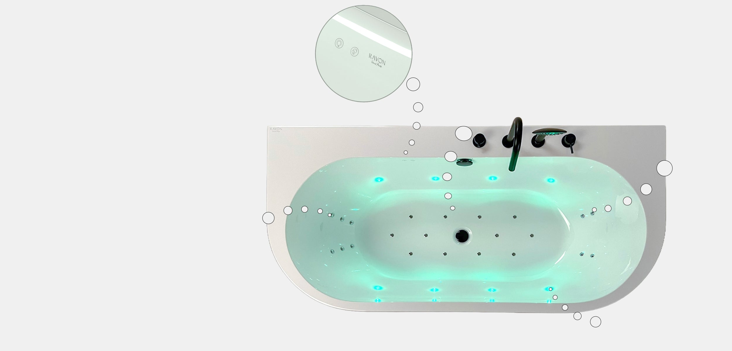 Precyzyjnie skonstruowane mikrodysze znajdują się w ergonomicznej tylnej części wanny, umożliwiając precyzyjny masaż pleców. Działa to jako skuteczny sposób na eliminację napięcia i stresu z obszaru pleców użytkownika.