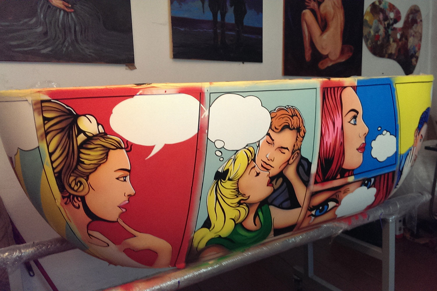 Wanna wolnostojąca ręcznie malowana Space Komiks