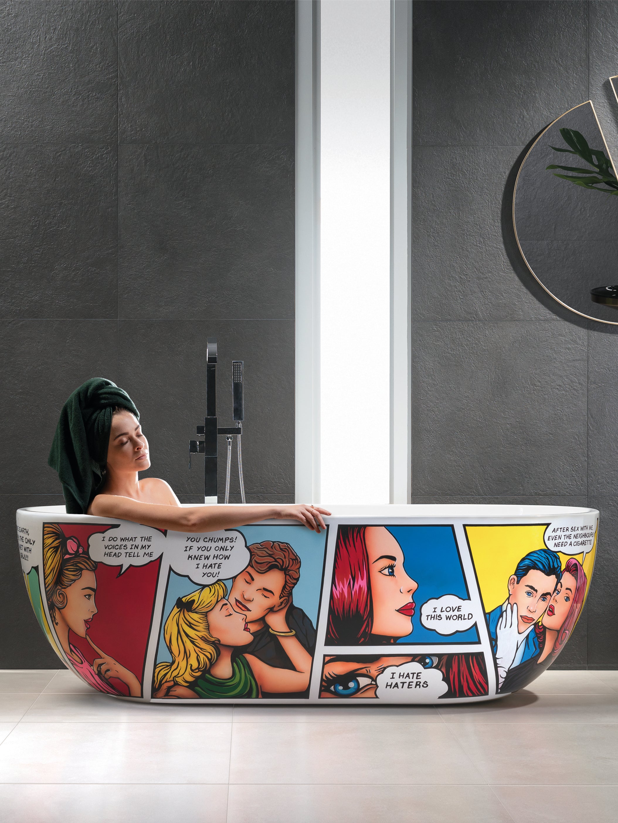 Jeśli sądziliście, że już wszystko widzieliście i nic nie może Was zaskoczyć, to... przepraszamy. Przepraszamy, że musimy powiedzieć, jak bardzo się mylicie. Poznajcie wannę wolnostojącą Ravon Space Komiks – sanktuarium relaksu i sztuki w Twojej łazience.